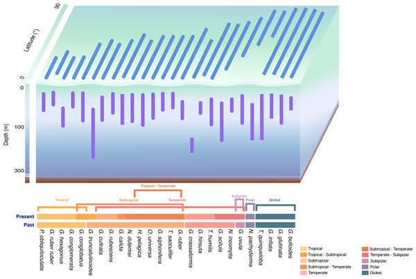 Using the FORCIS database, we mapped the distribution of planktonic goraminifera that record past ocean conditions. Our study reveals that these species mostly inhabit the upper ocean and thrive in waters ranging from −2 °C to over 31 °C. Their range is shifting, with species once limited to warm regions now appearing in cooler areas and smaller species increasing in number. This work refines our view of their biogeography and how climate change is reshaping ocean life.