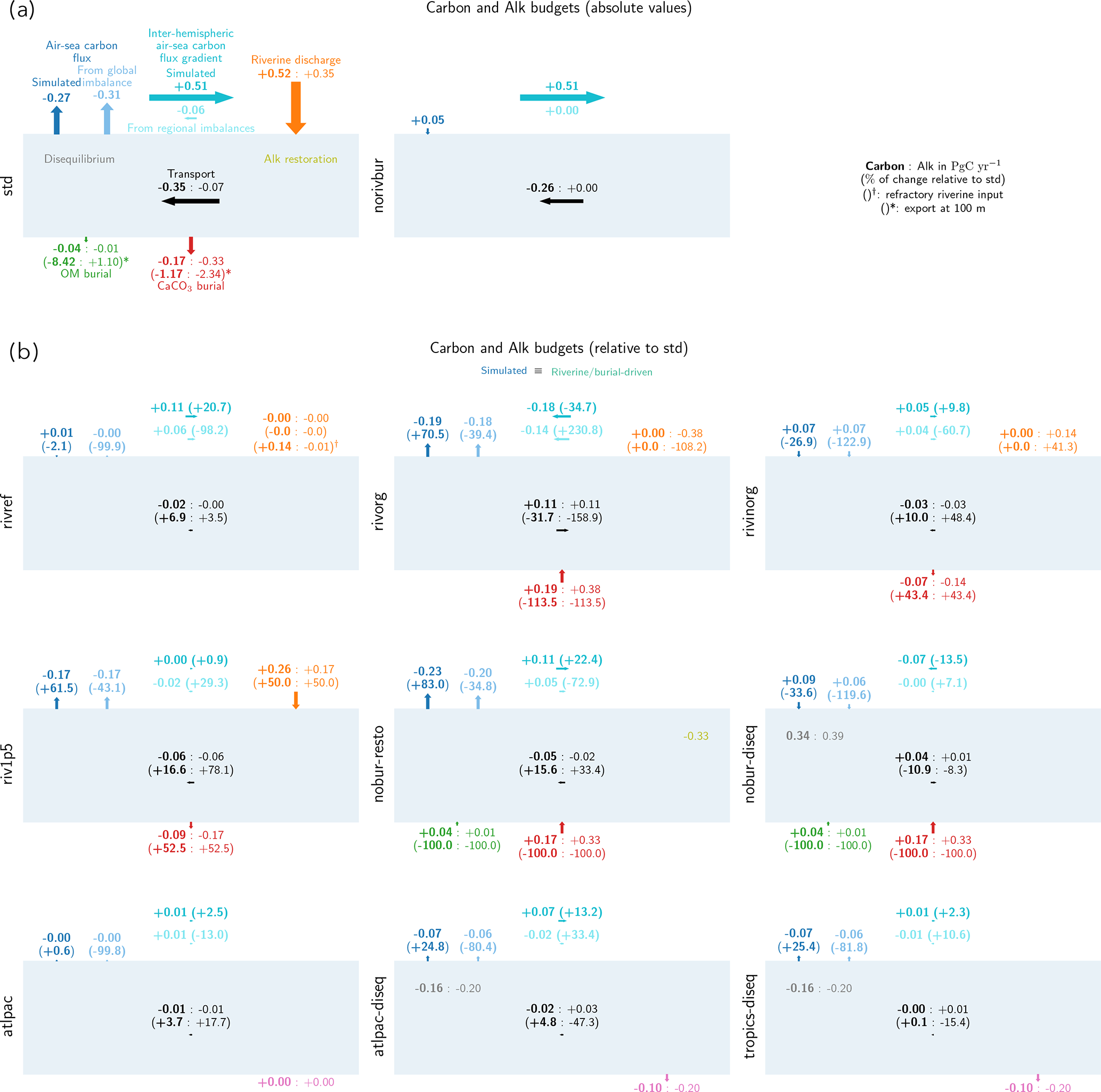 Subsequently, by taking the difference between the std and norivbur simulations, this allows us to determine the riverine/burial-driven air–sea carbon flux of our standard configuration: