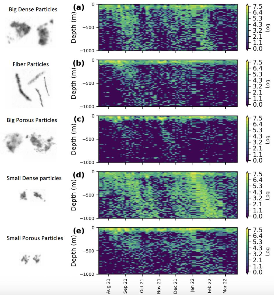 Despite significant improvement in observation capacities from ships, high frequency observations during long-term deployment to study relevant scales of marine snow dynamics over a large depth range was not possible. Autonomous platforms equipped with imaging sensors have emerged and are currently being utilized to remotely record plankton and particle distributions in addition to the core parameters such as salinity, temperature, and optically derived other variables (Claustre et al., 2020; Picheral et al., 2022). Recently, surface blooms followed by plumes of sinking material were monitored using optical sensors (fluorescence and backscatter) mounted on BGC-Argo float drifting in a quasi-Lagrangian mode (Briggs et al., 2011, 2020) and global POC standing stocks have been calculated (Fox et al., 2024). Such studies with optical sensors (fluorescence, backscatter) are key to understanding particle dynamics in the core of the oceans but they are not adapted to study marine snow.