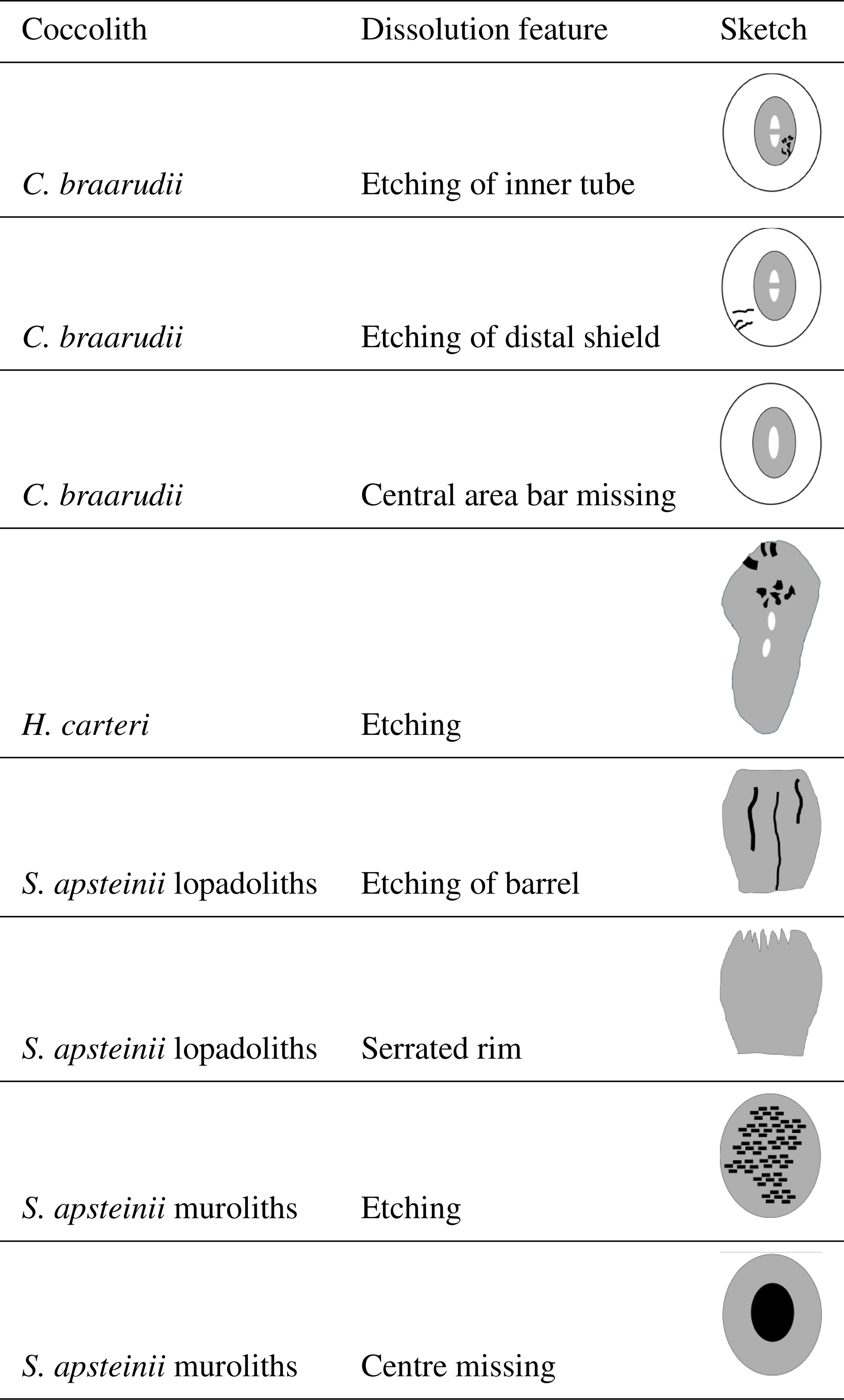 In summary, our results show that dissolution experiments complement field studies and contribute to a deeper understanding of both coccolith structure and the ecological impact of seawater undersaturation with respect to calcite. We conclude that