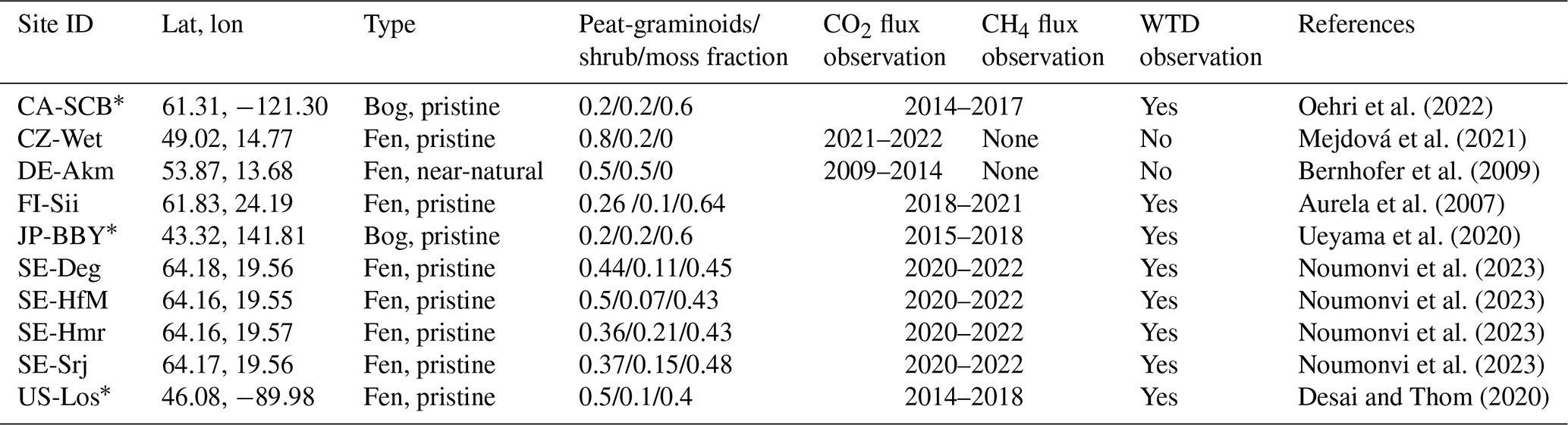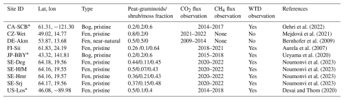 Salmon, E., Jégou, F., Guenet, B., Jourdain, L., Qiu, C., Bastrikov, V., Guimbaud, C., Zhu, D., Ciais, P., Peylin, P., Gogo, S., Laggoun-Défarge, F., Aurela, M., Bret-Harte, M. S., Chen, J., Chojnicki, B. H., Chu, H., Edgar, C. W., Euskirchen, E. S., Flanagan, L. B., Fortuniak, K., Holl, D., Klatt, J., Kolle, O., Kowalska, N., Kutzbach, L., Lohila, A., Merbold, L., Pawlak, W., Sachs, T., and Ziemblińska, K.: Assessing methane emissions for northern peatlands in ORCHIDEE-PEAT revision 7020, Geosci. Model Dev., 15, 2813–2838, https://doi.org/10.5194/gmd-15-2813-2022, 2022.
