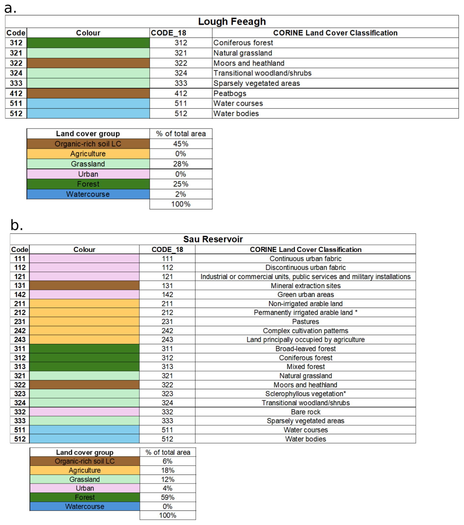 Figure A1 contains the elevation range for the two contrasting freshwater ecosystems: Lough Feeagh and Sau Reservoir.