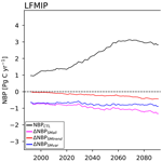 The SM-induced changes in NBP derived from LFMIP are compared with those of the previous generation, GLACE-CMIP5 (Table 1). For this purpose, we partially reproduce and build on the analysis of Green et al. (2019) to compare SM-induced changes in NBP between model generations for the period 1981–2099. Available for the analysis of GLACE-CMIP5 are outputs from four models, CESM, GFDL, IPSL, and MPI-ESM (see Seneviratne et al. (2013) Table 1 for detailed information). Among the available ESMs for each model generation, three of four model are from the same modelling group. The GLACE-CMIP5 experiment follows the same protocol as LFMIP for the previous model generation, CMIP5. To compare recent and projected future conditions across models, our analysis focuses on a baseline period (1981–2010) and an end-of-century future period (2070–2099). We note that the period for the SM prescription in GLACE-CMIP5 (1971–2000) is roughly one decade earlier than in LFMIP. This impedes the direct comparison for the impact of SM on NBP across model generations for the baseline period, but our focus lies on the evolution of SM-induced impacts on NBP by the end of the century, which are not affected.