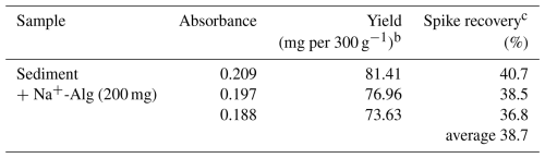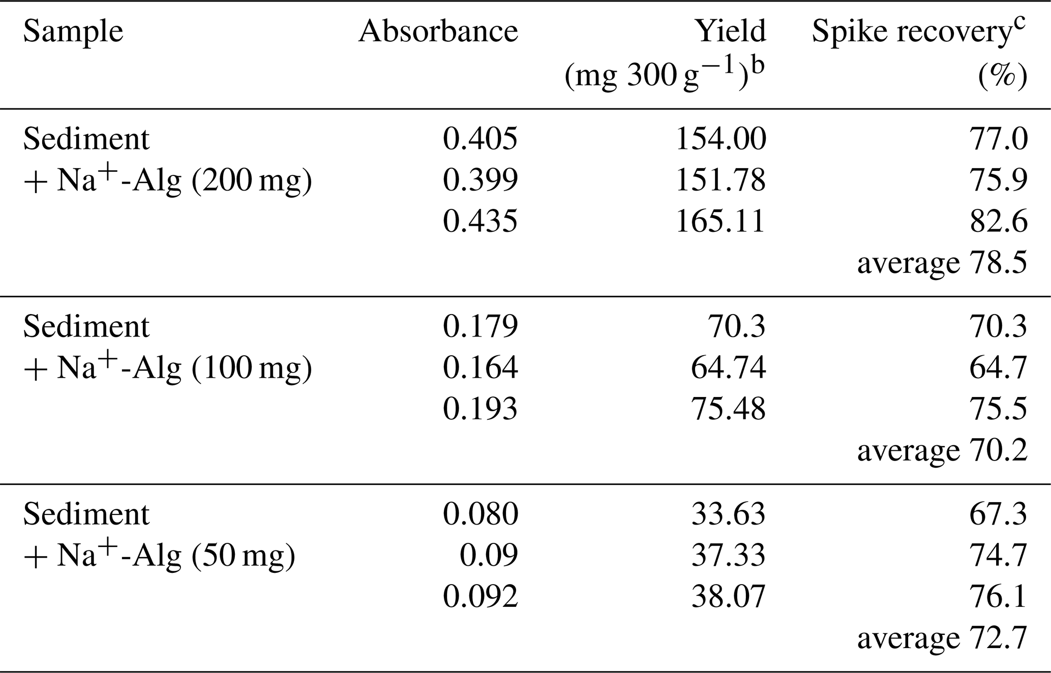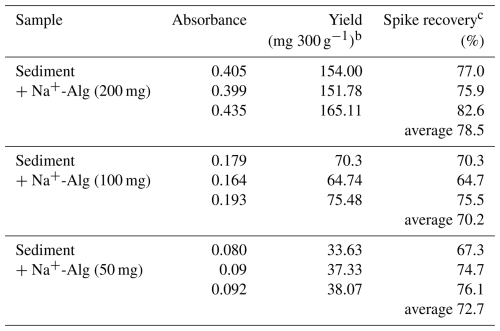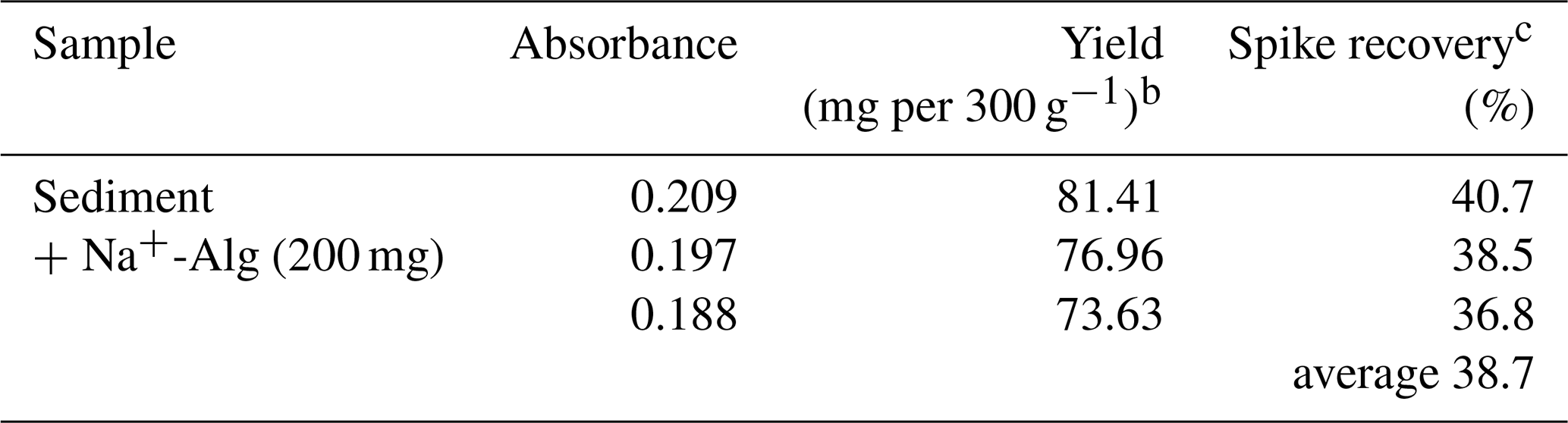 Table 5Spike recovery of added Na+-Alg from the ocean sediment when using the modified extraction protocola