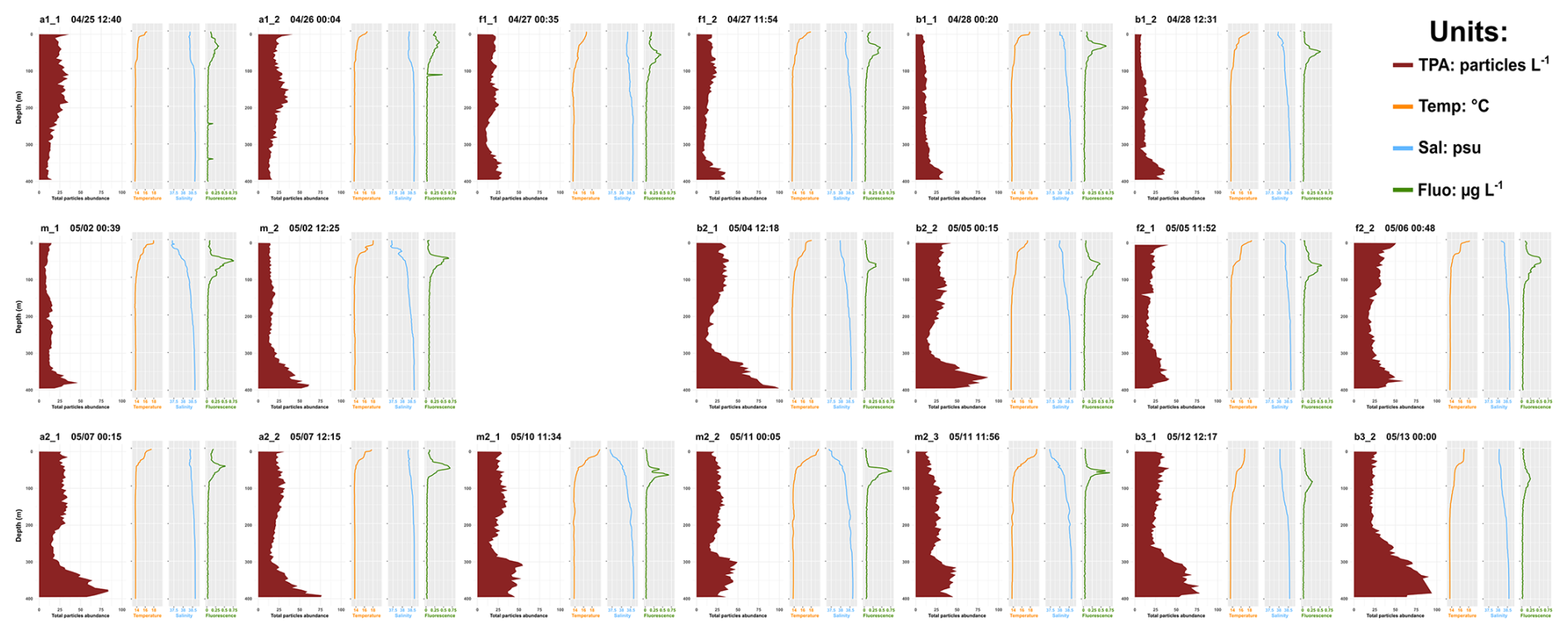Panaïotis, T., Poteau, A., Riquier, E. D., Catalano, C., Courchet, L., Motreuil, S., Coppola, L., Picheral, M., and Irisson, J. O.: Temporal evolution of plankton and particles distribution across a mesoscale front during the spring bloom, Limnol. Oceanogr., 9999, 1–15, https://doi.org/10.1002/lno.12566, 2024.