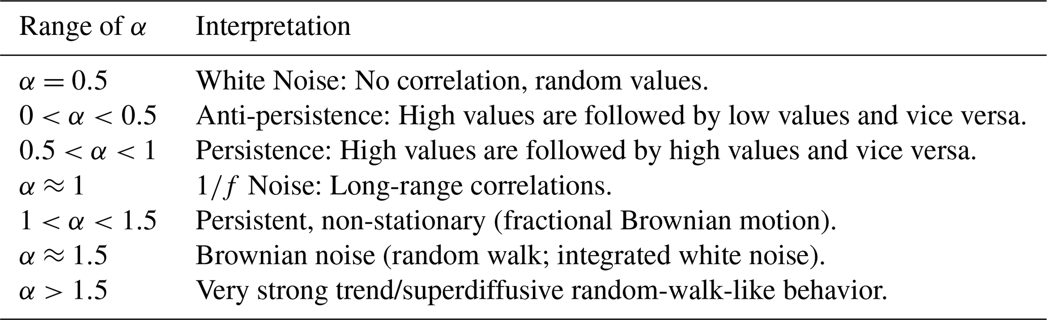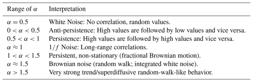 Here, α is the autocorrelation exponent and the main result of the DFA method, as described in Table 1, with a good introduction in Løvsletten (2017).