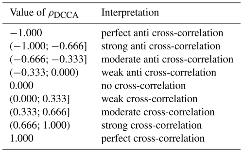 Zebende, G.: DCCA cross-correlation coefficient: Quantifying level of cross-correlation, Physica A, 390, 614–618, https://doi.org/10.1016/j.physa.2010.10.022, 2011. a, b, c, d
