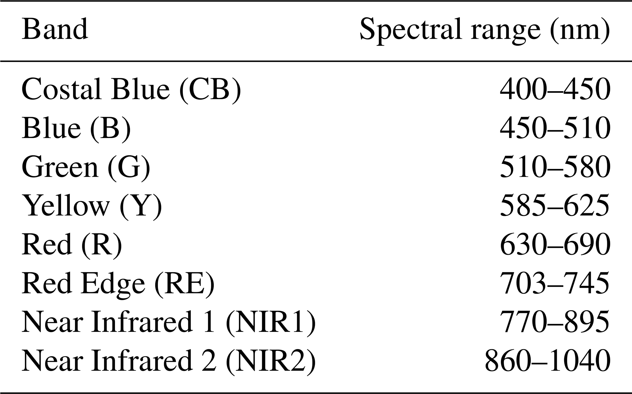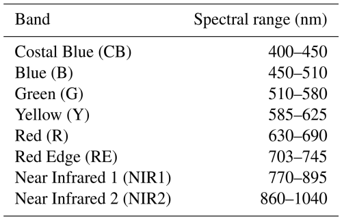 Abutaleb, K., Newete, S. W., Mangwanya, S., Adam, E., and Byrne, M. J.: Mapping eucalypts trees using high resolution multispectral images: A study comparing WorldView 2 vs. SPOT 7, Egypt. J. Remote Sens. Space Sci., 24, 333–342, https://doi.org/10.1016/j.ejrs.2020.09.001, 2021.